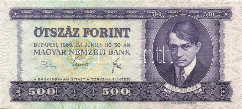 Beschreibung: 1969. 500Ft (4x) egymás utáni sorszámokkal T:I