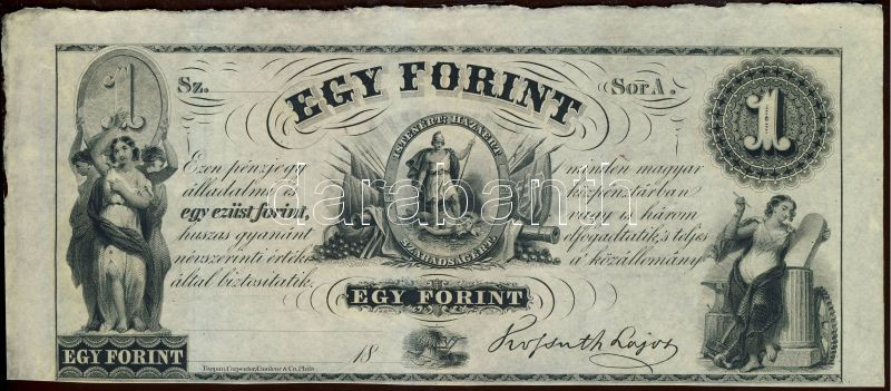 Emigrációs "Kossuth bankó" 18.. 1Ft "Sor A." T:I https://www.darabanth.com/de/109-Fernauktion/109.0/Numismatik/~366/Emigracios-Kossuth-banko-18-1Ft-Sor-A-TI~II240414