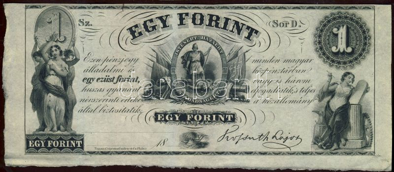 Emigrációs "Kossuth bankó" 18.. 1Ft "Sor D." T:I https://www.darabanth.com/de/109-Fernauktion/109.0/Numismatik/~366/Emigracios-Kossuth-banko-18-1Ft-Sor-D-TI~II240458