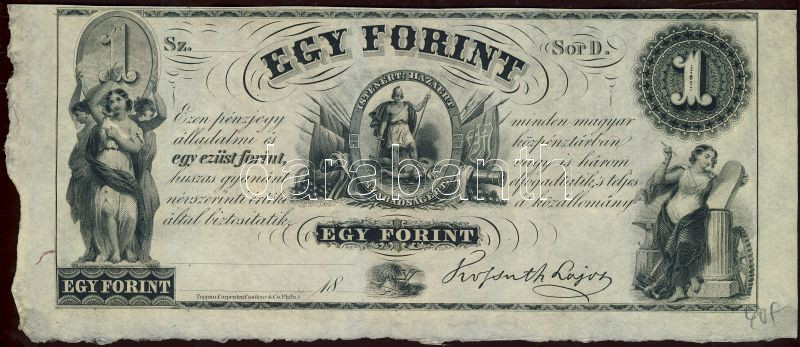 Emigrációs "Kossuth bankó" 18.. 1Ft "Sor D." T:I https://www.darabanth.com/de/109-Fernauktion/109.0/Numismatik/~366/Emigracios-Kossuth-banko-18-1Ft-Sor-D-TI~II240459