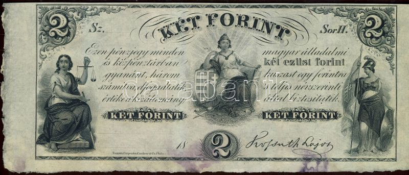 Emigrációs "Kossuth bankó" 18.. 2Ft "Sor H." T:I https://www.darabanth.com/de/109-Fernauktion/109.0/Numismatik/~366/Emigracios-Kossuth-banko-18-2Ft-Sor-H-TI~II240779