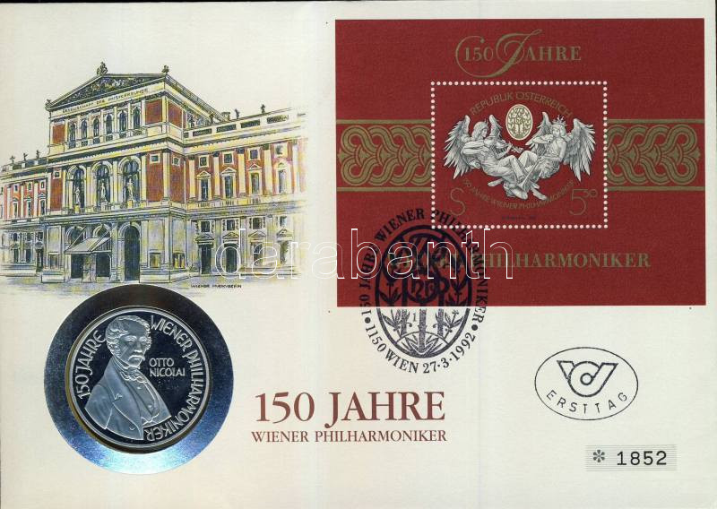 Ausztria 1992. 100Sch Ag "Otto Nicolai" érmés borítékon, bélyegblokkal... https://www.darabanth.com/de/109-Fernauktion/109.0/Numismatik/~367/Ausztria-1992-100Sch-Ag-Otto-Nicolai-ermes-boritekon-belyegblokkal-TPP-hatoldali-ismertet~II272131