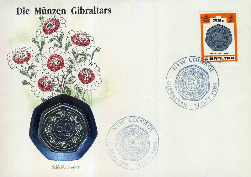 Gibraltár 1989. 50p "II. Erzsébet" bélyeges érmés borítékon, alkalmi b... https://www.darabanth.com/de/109-Fernauktion/109.0/Numismatik/~367/Gibraltar-1989-50p-II-Erzsebet-belyeges-ermes-boritekon-alkalmi-belyegzovel-T1-hatol~II272043