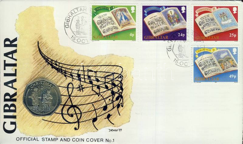 Gibraltár 1991. 50Ł "Karácsony" érmés borítékon komplett bélyegsorral,... https://www.darabanth.com/de/109-Fernauktion/109.0/Numismatik/~367/Gibraltar-1991-50C581-Karacsony-ermes-boritekon-komplett-belyegsorral-elsonapi-belyegzov~II272014
