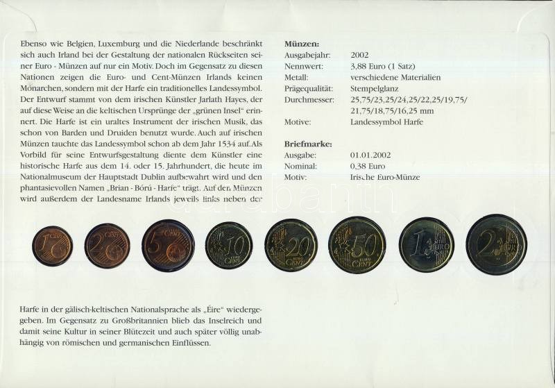 Beschreibung: Írország 2002. Komplett Euro forgalmi pénz sor bélyeges érmés borítékon, elsőnapi bélyegzővel T:2 hátoldali ismertető tanúsítvánnyal