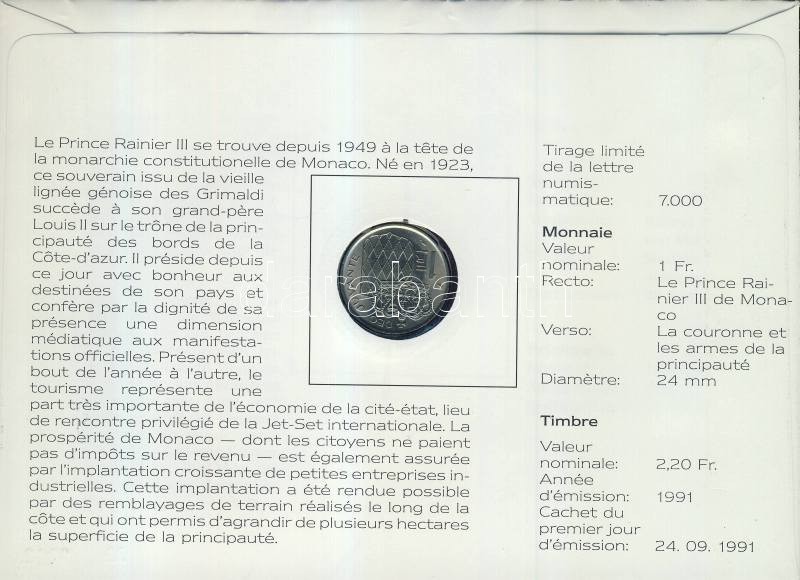 Monaco 1974. 1Fr "III. Rainier" érmés borítékon, bélyegpárral T:1 háto... https://www.darabanth.com/de/109-Fernauktion/109.0/Numismatik/~367/Monaco-1974-1Fr-III-Rainier-ermes-boritekon-belyegparral-T1-hatoldali-ismerteto-tanus~II271995