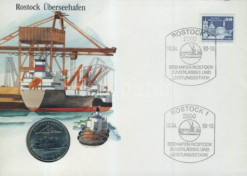Beschreibung: NDK 1988. 5M "Rostock kikötője" érmés bélyeges borítékon, alkalmi bélyegzővel T:1