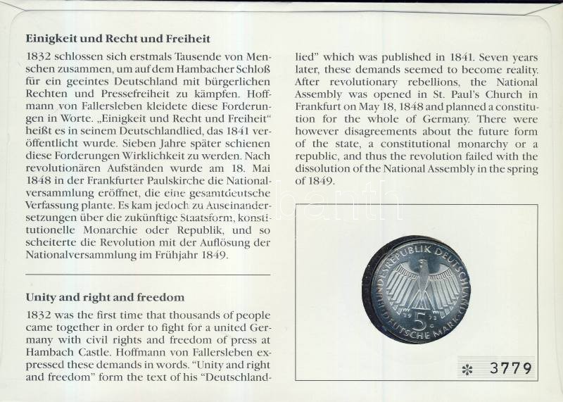 Beschreibung: NSZK 1973. 5M Ag "Nemzetgyűlés" bélyeges érmés borítékon elsőnapi bélyegzővel T:BU hátoldali ismertetővel