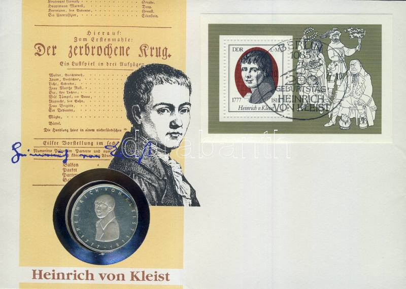 Beschreibung: NSZK 1977. 5M Ag "Kleist" érmés borítékon, NDK bélyegblokkal, alkalmi bélyegzővel T:1