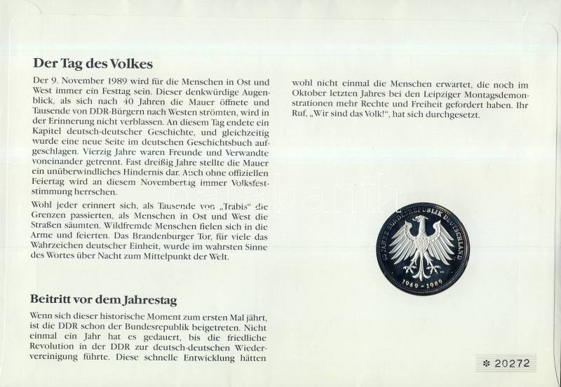 Beschreibung: Németország 1989. "A fal megnyitása" Ag 20,1g érmés borítékon 2 db bélyeggel, alkalmi bélyegzővel T:PP hátoldali ismertetővel