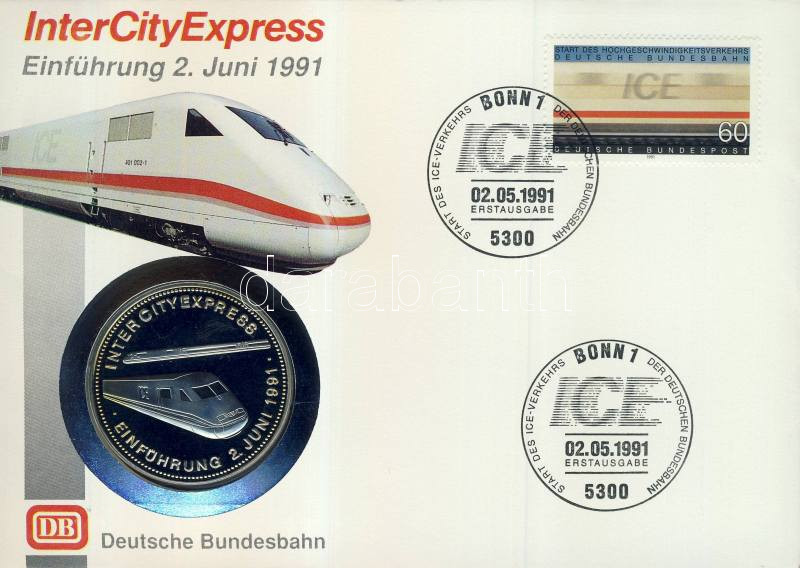 Németország 1991. "InterCity Express" Ffm bélyeges érmés borítékon, el... https://www.darabanth.com/de/109-Fernauktion/109.0/Numismatik/~367/Nemetorszag-1991-InterCity-Express-Ffm-belyeges-ermes-boritekon-elsonapi-belyegzovel-T~II272412