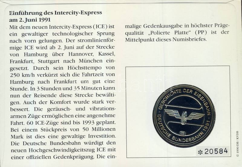 Beschreibung: Németország 1991. "InterCity Express" Ffm bélyeges érmés borítékon, elsőnapi bélyegzővel T:PP hátoldali ismertetővel