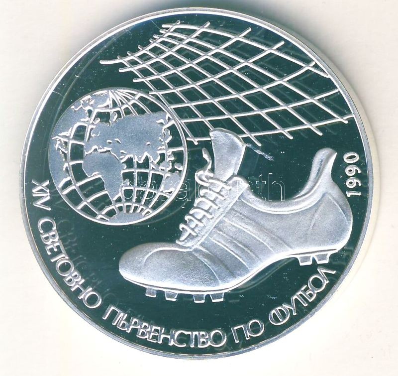 Beschreibung: Bulgária 1990. 25L Ag "Labdarúgás-földgömb, stopli, háló" T:PP Csak 15.600db!