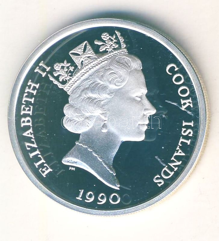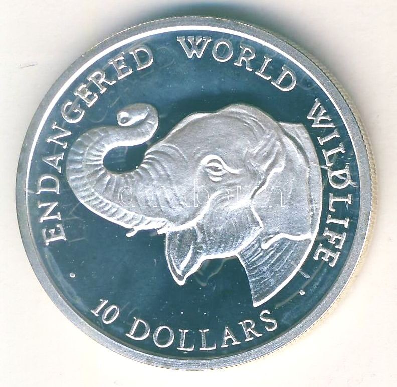 Beschreibung: Cook szigetek 1990. 10$ Ag "Veszélyeztetett állatvilág-elefántfej" T:PP Csak 25.000db!