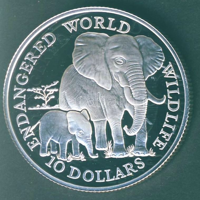 Beschreibung: Cook szigetek 1990. 10$ Ag "Veszélyeztetett állatvilág-elefántok" T:PP Csak 25.000db!