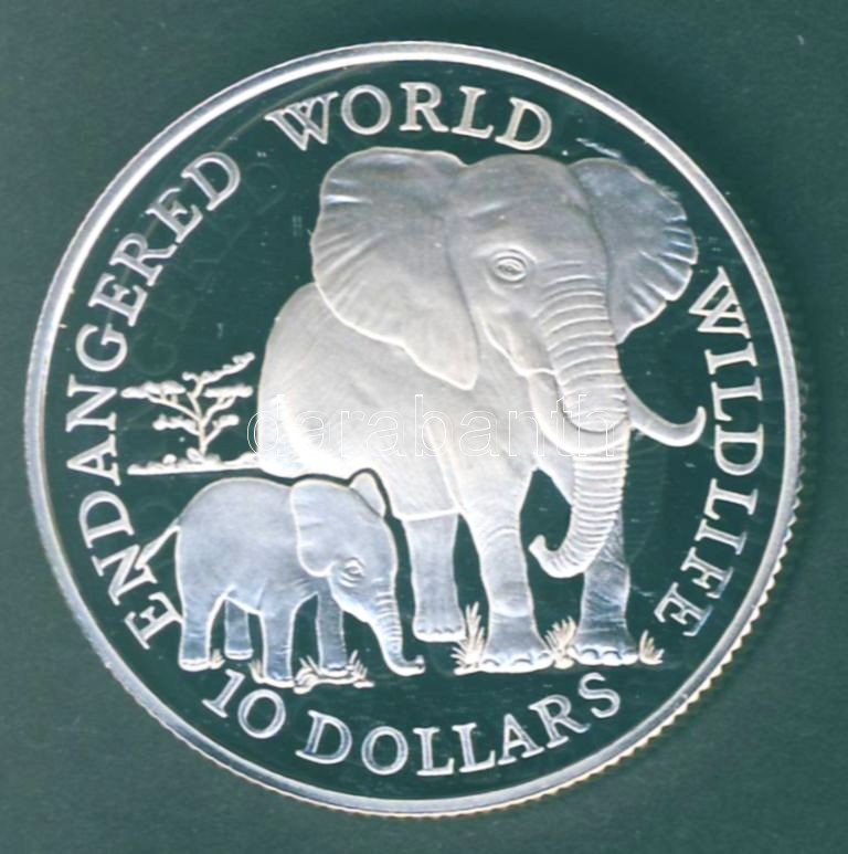 Beschreibung: Cook szigetek 1990. 10$ Ag "Veszélyeztetett állatvilág-elefántok" T:PP Csak 25.000db!