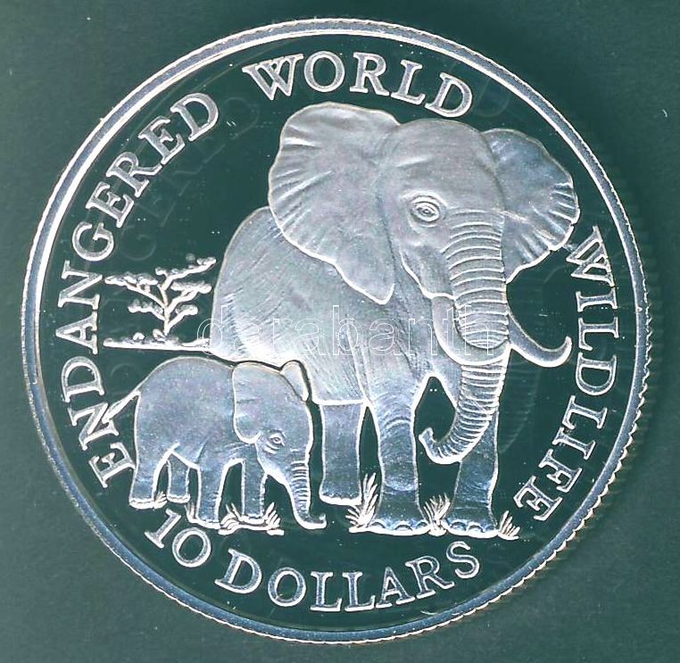 Beschreibung: Cook szigetek 1990. 10$ Ag "Veszélyeztetett állatvilág-elefántok" T:PP Csak 25.000db!