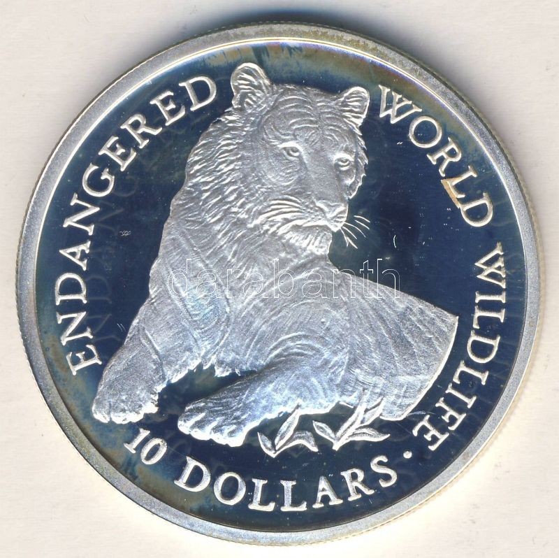 Beschreibung: Cook szigetek 1990. 10$ Ag "Veszélyeztetett állatvilág-tigris" T:PP Csak 25.000db!