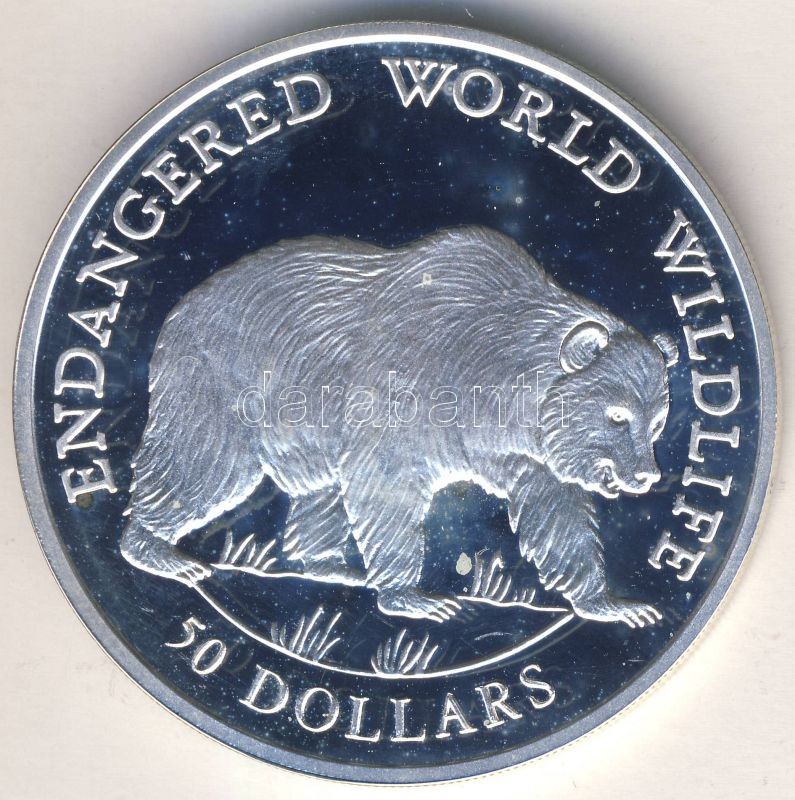 Beschreibung: Cook szigetek 1990. 50$ Ag "Veszélyeztetett állatvilág-medve" T:PP Csak 25.000db!