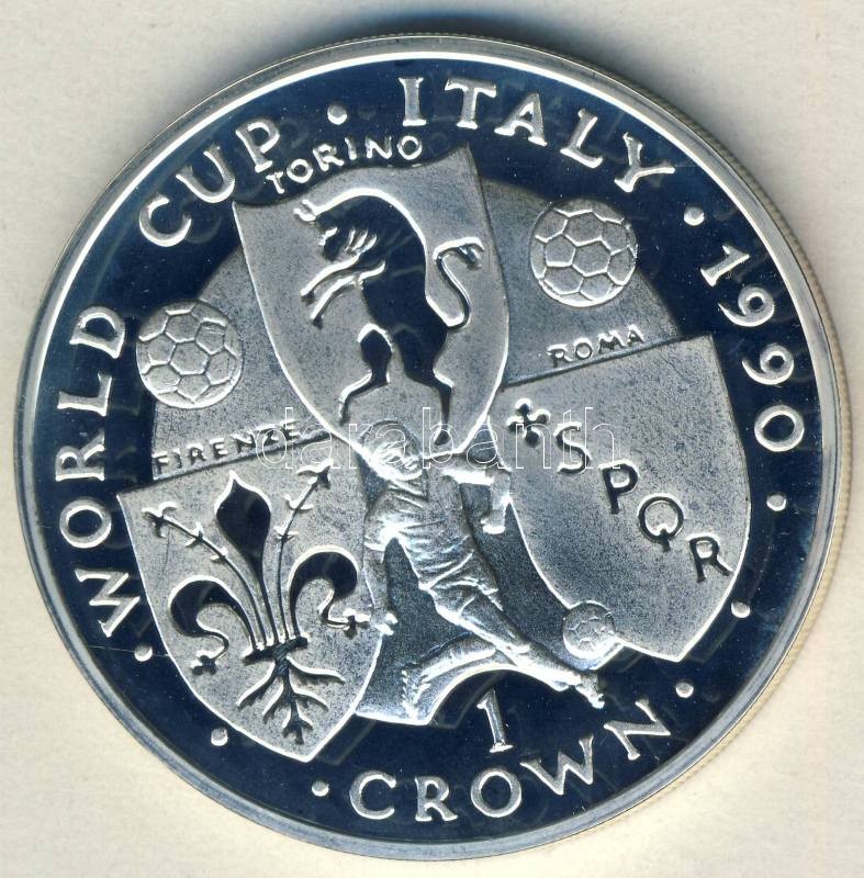 Man-sziget 1990. 1C Ag "Labdarúgó VB-játékos, labdák és címerek" T:PP https://www.darabanth.com/de/109-Fernauktion/109.0/Numismatik/~375/Man-sziget-1990-1C-Ag-Labdarugo-VB-jatekos-labdak-es-cimerek-TPP~II271972