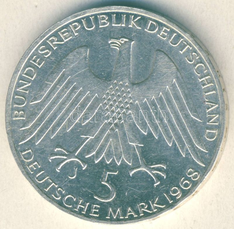 NSZK 1968. 5M Ag "Raiffeisen" T:BU https://www.darabanth.com/de/109-Fernauktion/109.0/Numismatik/~375/NSZK-1968-5M-Ag-Raiffeisen-TBU~II271739