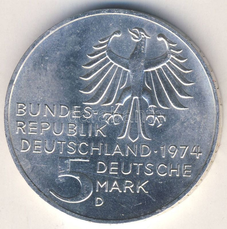 NSZK 1974. 5M Ag "Kant" T:BU https://www.darabanth.com/de/109-Fernauktion/109.0/Numismatik/~375/NSZK-1974-5M-Ag-Kant-TBU~II273365
