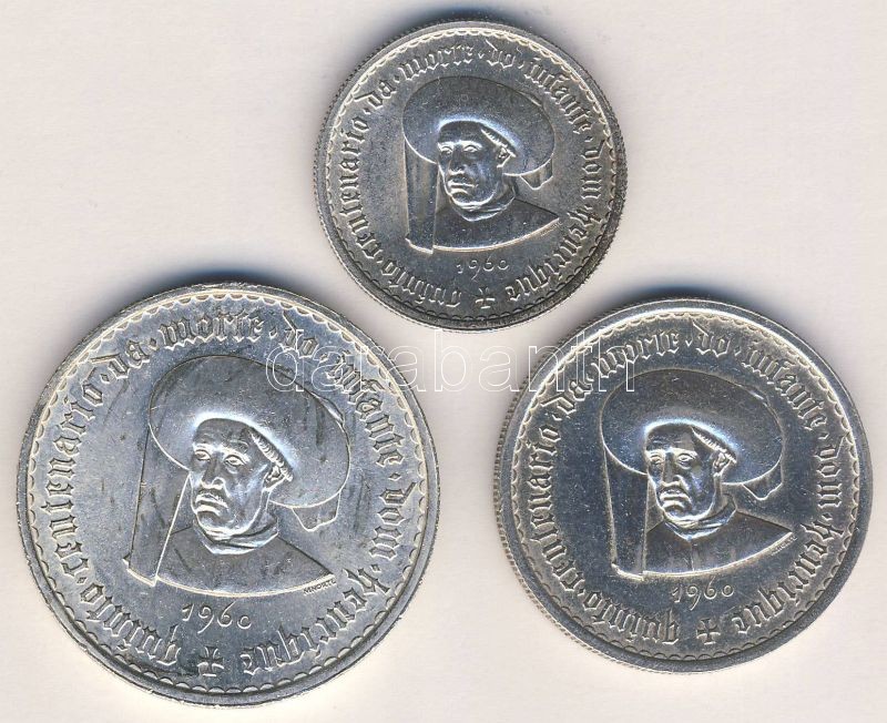 Beschreibung: Portugália 1960. 5$ + 10$ + 20$ Ag "Henrik herceg a Navigátor" teljes sor T:1/2+