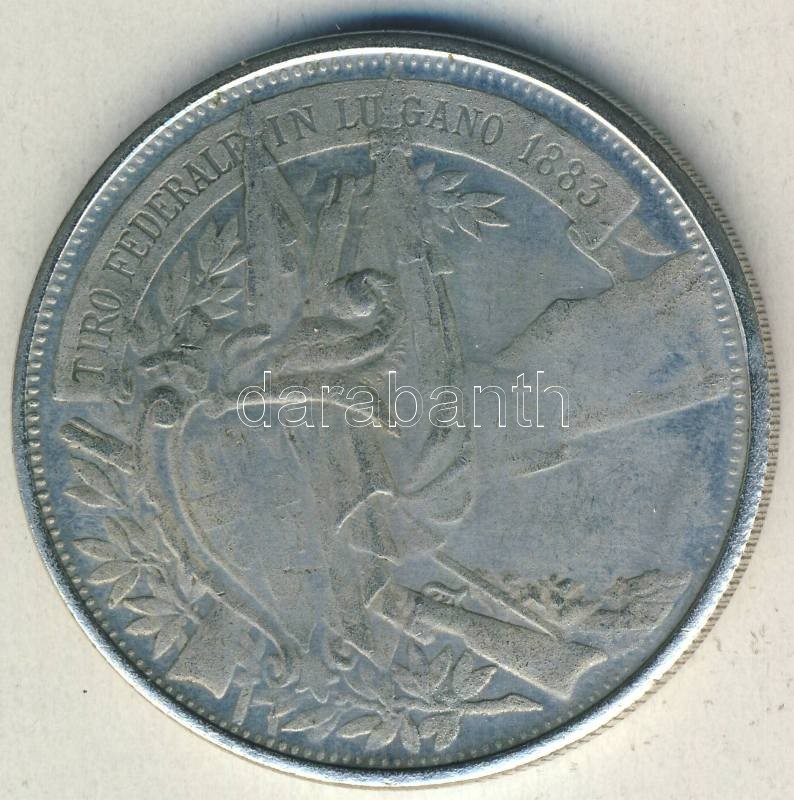 Beschreibung: Svájc 1883. 5Fr "Schützentaler" hamisítványa