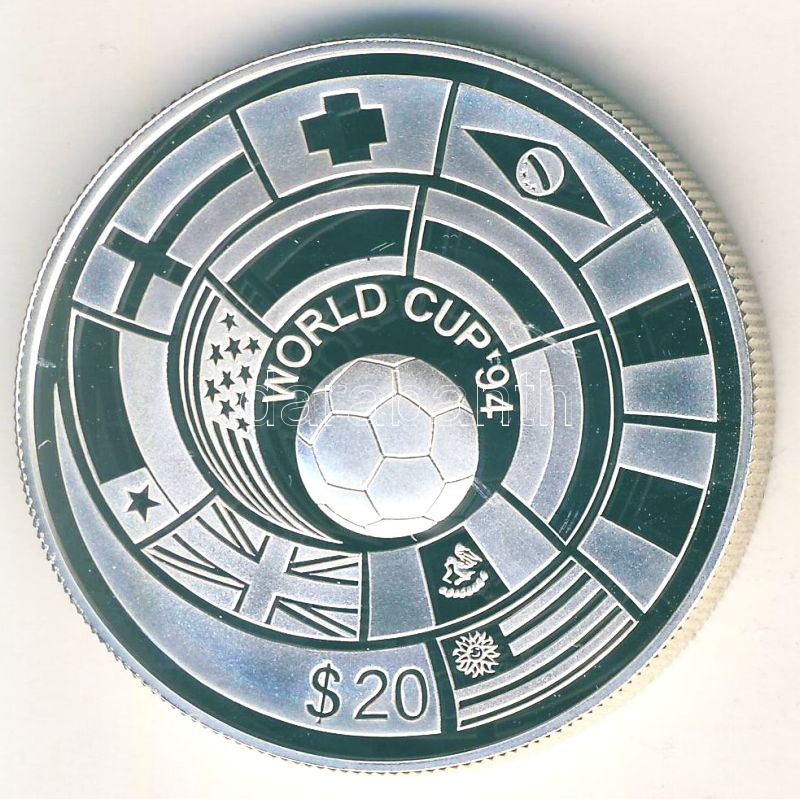 Tuvalu 1994. 20$ Ag "Labdarúgó VB" T:PP https://www.darabanth.com/de/109-Fernauktion/109.0/Numismatik/~375/Tuvalu-1994-20USD-Ag-Labdarugo-VB-TPP~II273846
