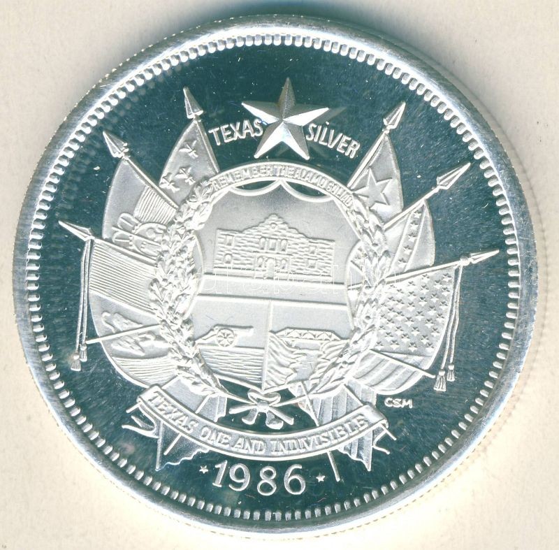USA 1986. 1 Troy oz. Ag "150 éves Texas" T:PL https://www.darabanth.com/de/109-Fernauktion/109.0/Numismatik/~375/USA-1986-1-Troy-oz-Ag-150-eves-Texas-TPL~II271777