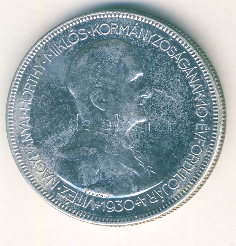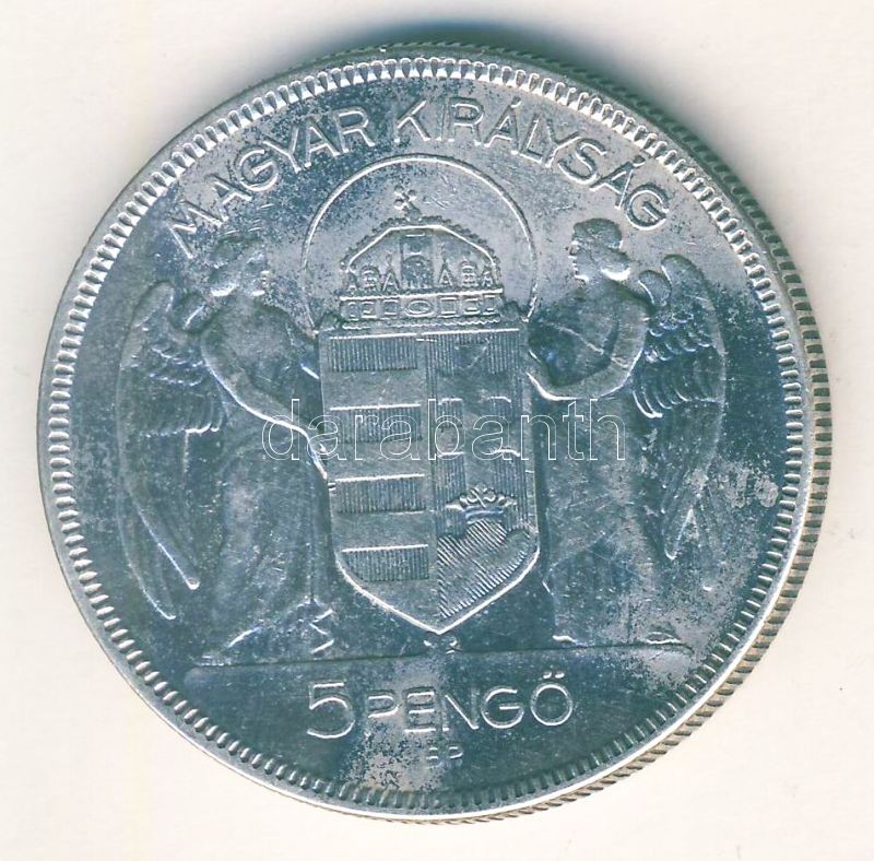 1930. 5P Ag "Horthy jobbra" T:3+ https://www.darabanth.com/de/109-Fernauktion/109.0/Numismatik/~376/1930-5P-Ag-Horthy-jobbra-T3plus~II274023