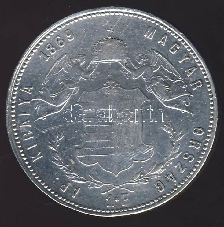 1869GY. F. 1Ft Ag "angyalos" T:3+/2- https://www.darabanth.com/de/109-Fernauktion/109.0/Numismatik/~390/1869GY-F-1Ft-Ag-angyalos-T3plus2-~II274263