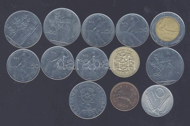 Kis vegyes fémpénz tétel, 13db, olasz, angol, indiai, benne beváltható... https://www.darabanth.com/de/109-Fernauktion/109.0/Numismatik/~390/Kis-vegyes-fempenz-tetel-13db-olasz-angol-indiai-benne-bevalthato-nominal-kis-femdobozb~II274304
