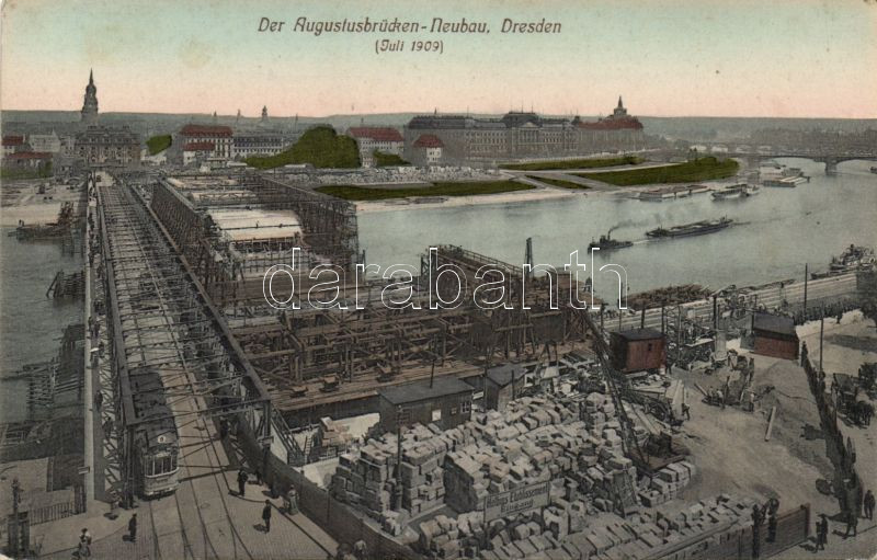 Dresden Augustus bridge and docks https://www.darabanth.com/de/11-Gross-Auktion/11.1/Ansichtskarten-Ausland/~3087/Dresden-Augustus-bridge-and-docks~II358520