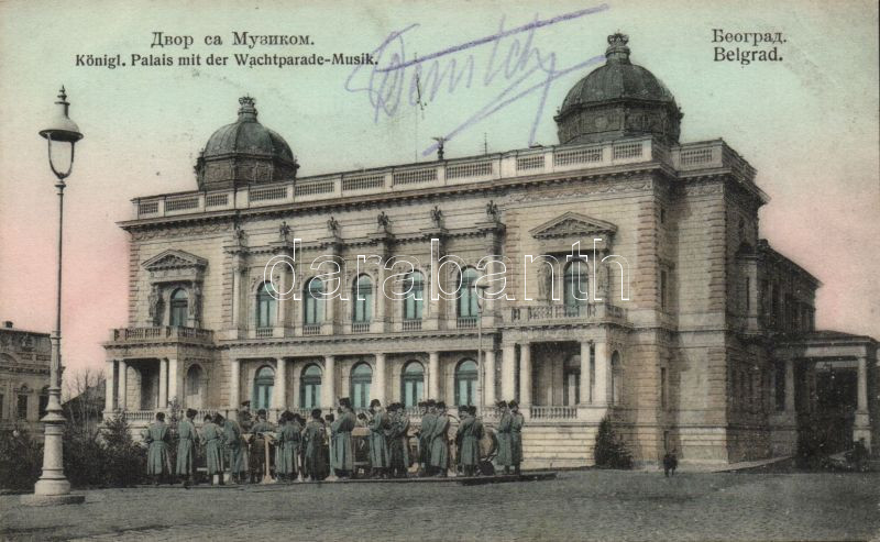 Belgrade Royal Palace with military brass band https://www.darabanth.com/de/11-Gross-Auktion/11.1/Ansichtskarten-Ausland/~3101/Belgrade-Royal-Palace-with-military-brass-band~II350319