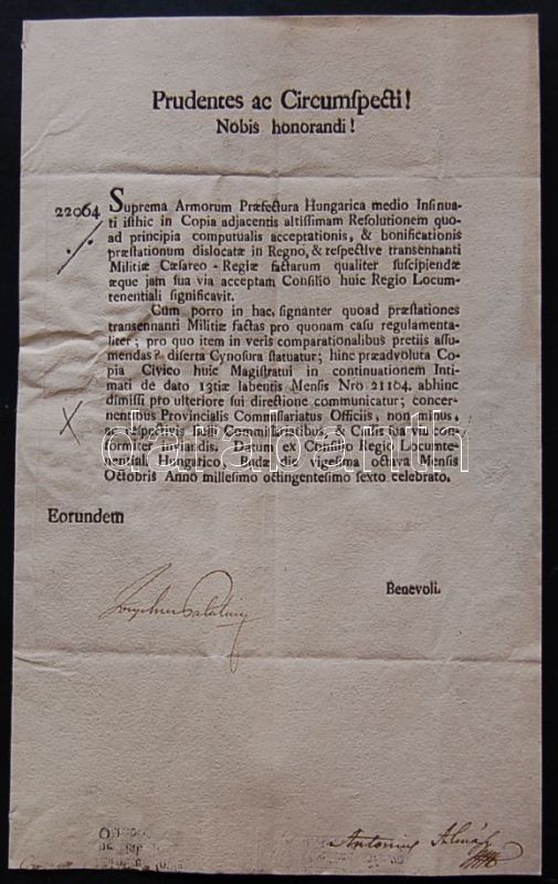 1806 Helytartótanácsi levél József nádor és gróf Almásy Antal saját kezű aláírásával / Ex offo letter of the Governing Council with autograph signature of Joseph Palladin and count Antonius Almasy
