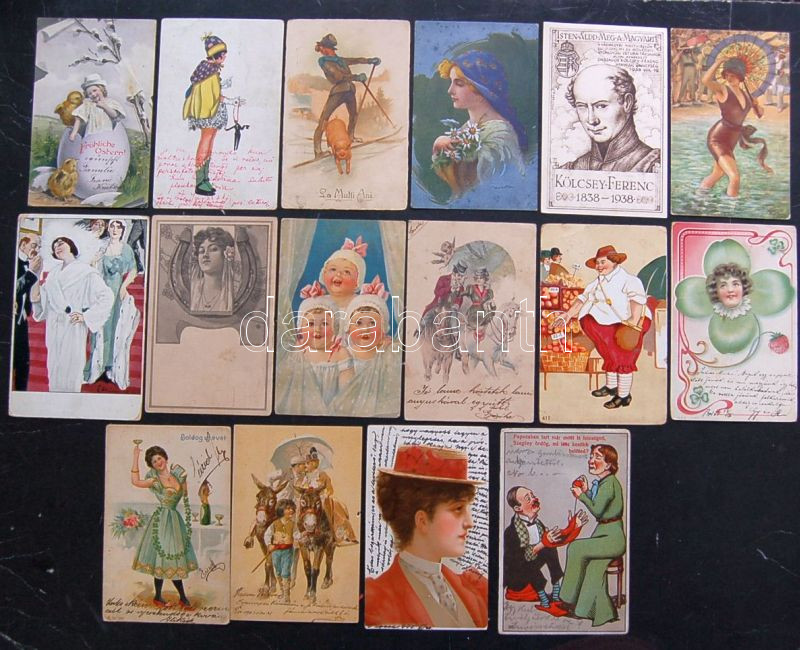Vegyes motívum képeslapok, benne magyar grafika, húsvét, karácsony, újév, festménylapok, költők, színészek, festmények, érdekes vegyes anyag sok jobbal több mint 550 db / Nice lot of thematic postcards, art and artists, greetings, very interesting colourful material, more than 550 pcs