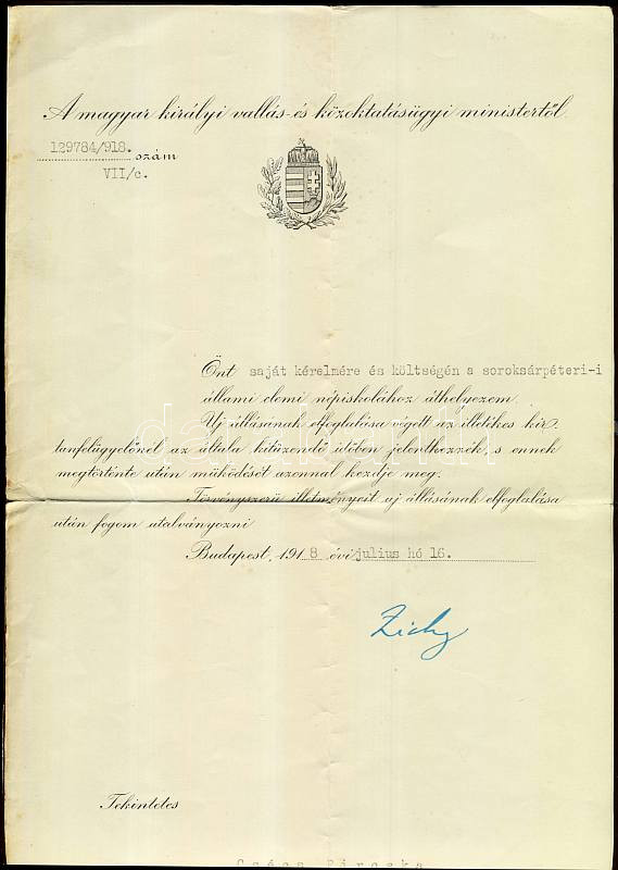 1918 Gróf Zichy János pártelnök, miniszter, országgyűlési képviselő al... https://www.darabanth.com/de/110-Fernauktion/110.0/Andere-Sammelgebiete/~300/1918-Grof-Zichy-Janos-partelnok-miniszter-orszaggyulesi-kepviselo-alairt-okirata~II275749