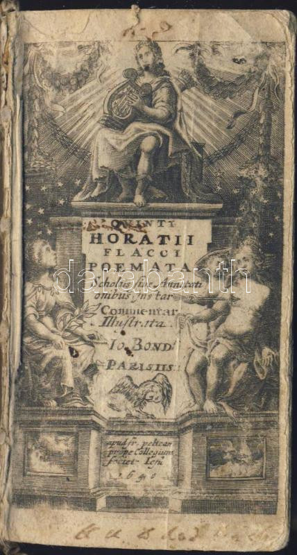1640 Joannis Bond/John Bond (1550-1612): Quinti Horatii Flacci Poemata scholiis sive annotationibus, quae brevis Commentarii vice esse possint illustrata, Paris, 877 old. (bőrkötés részben elvált, de szép hiánytalan állapotban)