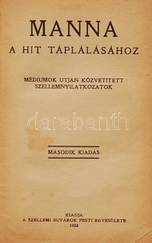 1922 Manna a Hit táplálásához című vallási témájú könyv a Szellemi Buv... https://www.darabanth.com/de/110-Fernauktion/110.0/Andere-Sammelgebiete/~308/1922-Manna-a-Hit-taplalasahoz-cimu-vallasi-temaju-konyv-a-Szellemi-Buvarok-Pesti-Egyesu~II260418