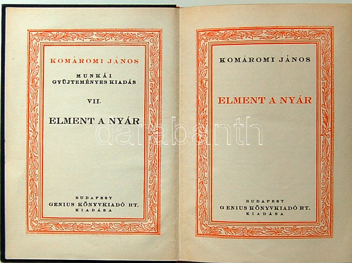 1930 Komáromi János: Elment a nyár, Genius könyvkiadó Rt. (kiváló álla... https://www.darabanth.com/de/110-Fernauktion/110.0/Andere-Sammelgebiete/~308/1930-Komaromi-Janos-Elment-a-nyar-Genius-konyvkiado-Rt-kivalo-allapotban~II239538