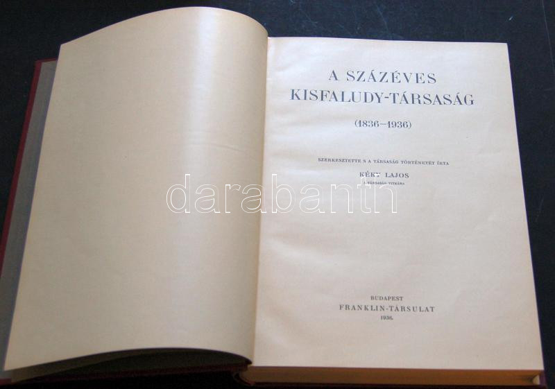 1936 Kéky Lajos: "A százéves kisfaludy-társaság (1836-1936)" 500. olda... https://www.darabanth.com/de/110-Fernauktion/110.0/Andere-Sammelgebiete/~308/1936-Keky-Lajos-A-szazeves-kisfaludy-tarsasag-1836-1936-500-oldalas-konyv-a-Franklin-Ta~II275680