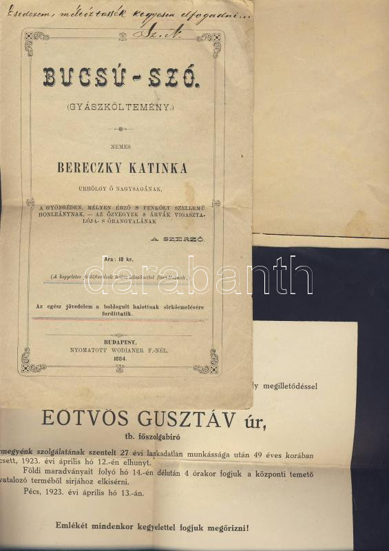 1879-1929 4 db gyászértesítő és egy nyomtatott gyászköltemény https://www.darabanth.com/de/110-Fernauktion/110.0/Andere-Sammelgebiete/~309/1879-1929-4-db-gyaszertesito-es-egy-nyomtatott-gyaszkoltemeny~II275347