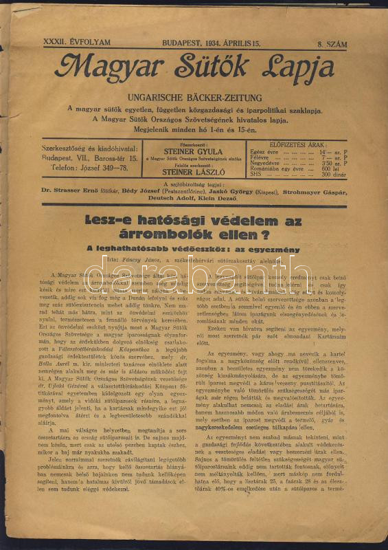 1934 Magyar Sütők Lapjának áprilisi száma https://www.darabanth.com/de/110-Fernauktion/110.0/Andere-Sammelgebiete/~309/1934-Magyar-Sutok-Lapjanak-aprilisi-szama~II275391