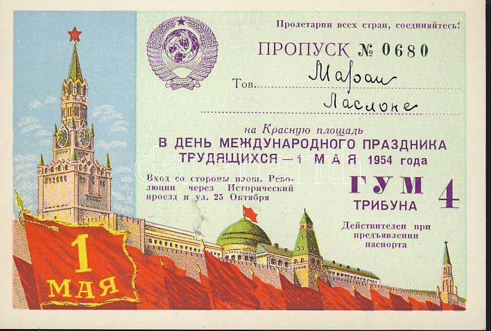 Beschreibung: 1954 Tribünjegy, Moszkva