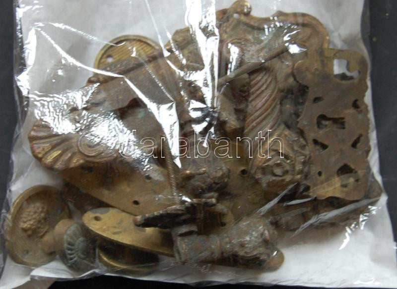 Beschreibung: Antik kis bútordísz tétel rézből, mint: kilincsek, zárdíszek és fogantyúk