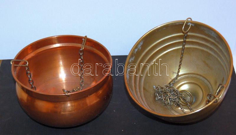 Beschreibung: Két darab függő kaspó rézből 65cm-es függesztett magassággal