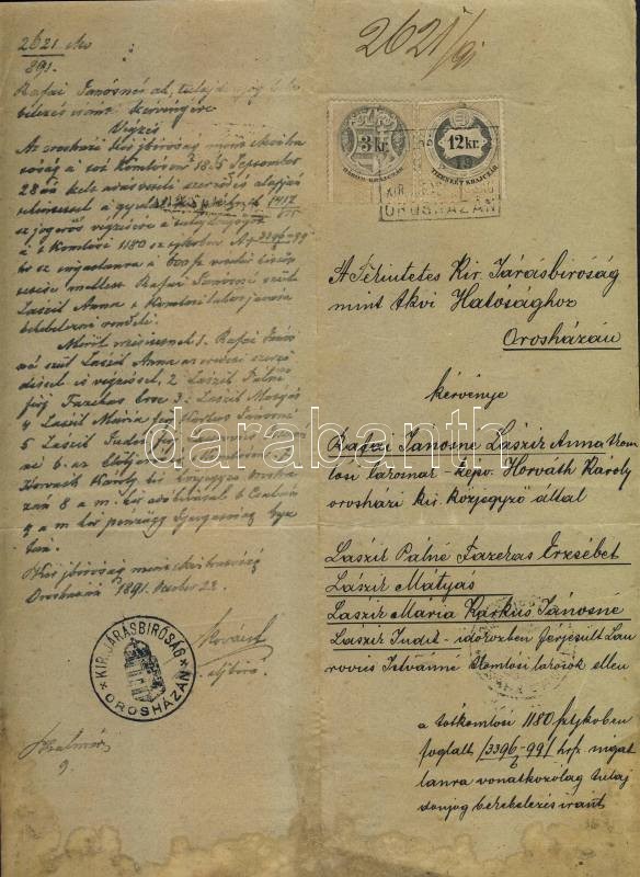 Beschreibung: 1870-1915 8 db okmánybélyeges irat / 8 document with document stamps