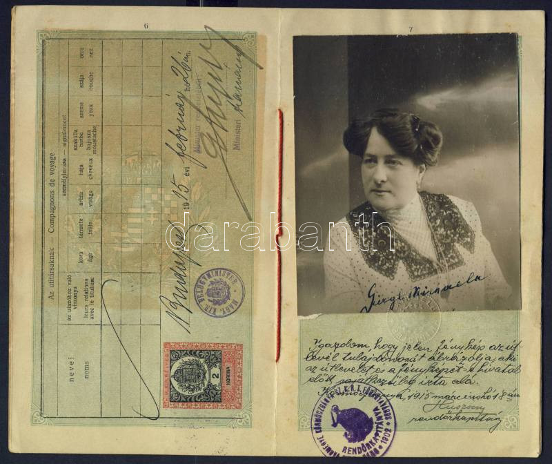 1915 Giergl Michaela színésznő útlevele / Passport of an actress https://www.darabanth.com/de/111-Fernauktion/111.0/Andere-Sammelgebiete/~1000061/1915-Giergl-Michaela-szineszno-utlevele-Passport-of-an-actress~II279303