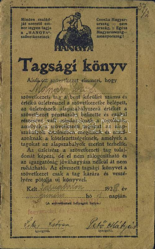 1928 A Hangya szövetkezet tagsági könyve https://www.darabanth.com/de/111-Fernauktion/111.0/Andere-Sammelgebiete/~1000061/1928-A-Hangya-szovetkezet-tagsagi-konyve~II278206